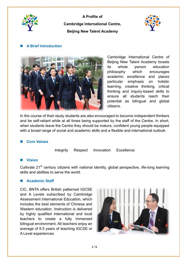 A Profile of Cambridge International Centre, Beijing New Talent Academy