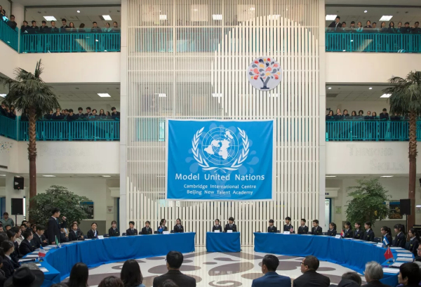 “模拟联合国”是模仿联合国及相关的国际机构,依据其运作方式和议事原则,围绕国际上的热点问题召开的会议。学生们通过亲身经历联合国会议的流程,例如阐述观点、政策辩论、投票表决、做出决议等,熟悉联合国的运作方式,拓展国际视野。