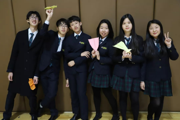 此外,10B班李紫婧、汤培辰、高逸婵、朱芮瑾共同设计制作了名为“柚子回旋360°”的纸飞机,他们邀请现场评委嘉宾合作完成飞行,使纸飞机环绕嘉宾飞行一周,巧妙的构思、圆满的飞行路线,引起观众们阵阵欢呼和沸腾。