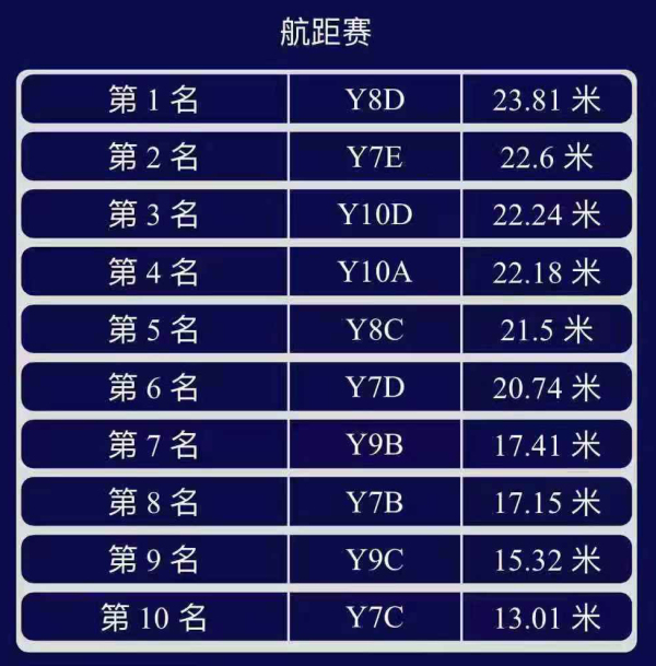 10A班的路嘉楷同学制作的纸飞机最长飞行时间为5.97秒,惊险夺冠。
