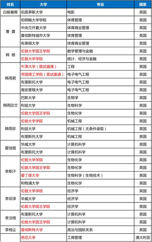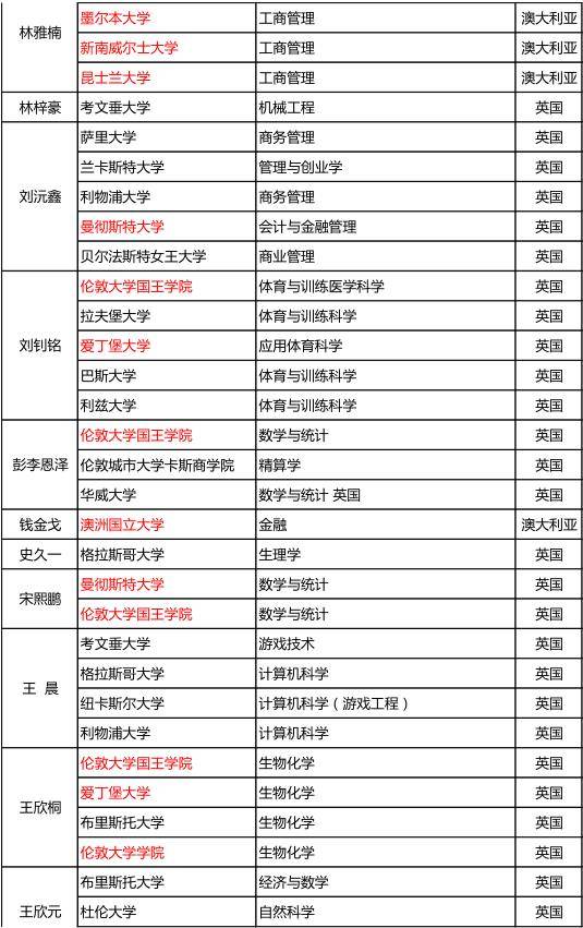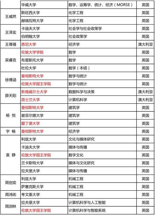 说明:红色字体为2019QS,USNEWS,TIMES全球排名前50大学。红色字体为2019QS,USNEWS,TIMES全球排名前50大学。