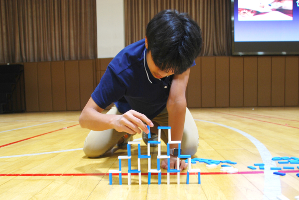 摆放多米诺骨牌前,学生们会设想比赛中可能出现的情况并做出预案,在游戏中发现问题、提出问题、并尝试解决问题。这个过程培养了学生主动探究问题的能力。 但并不是所有的预设都能面面俱到,也常常有险象环生的情况,这也正是很多人痴迷于此的原因。比赛中惊心动魄的一幕让人印象深刻。