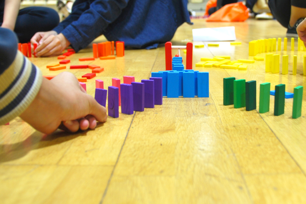 创意多米诺活动是一场考验智慧和耐力的游戏,孩子们比拼的是想象力、创造力、动手能力和团队合作能力。 这项活动最早起源于中国,有着上千年的历史,具有独特的教育功能,参与者时刻面临失败的打击,可能会因一次微小的失误而前功尽弃。这项活动,最开始只是比比谁推倒的更多、更远。在掌握了技巧之后,学生们把多米诺骨牌从单线向平面发展,开始利用多米诺骨牌组成一些文字和图案,甚至有的同学经过不停钻研和反复推敲后,把多米诺骨牌造型进一步向着立体层次发展,配以声、光的效果,使其极具艺术性和观赏性。