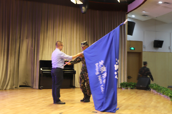 最后,军训教官从北京市性英才学校剑桥国际中心张捷校长手中接过校旗。当校旗在空中舞动的那一刻,参训学员们都深深的感受到了自己肩负的使命!正所谓“古之立大事者,不惟有超世之才,亦必有坚忍不拔之志”。