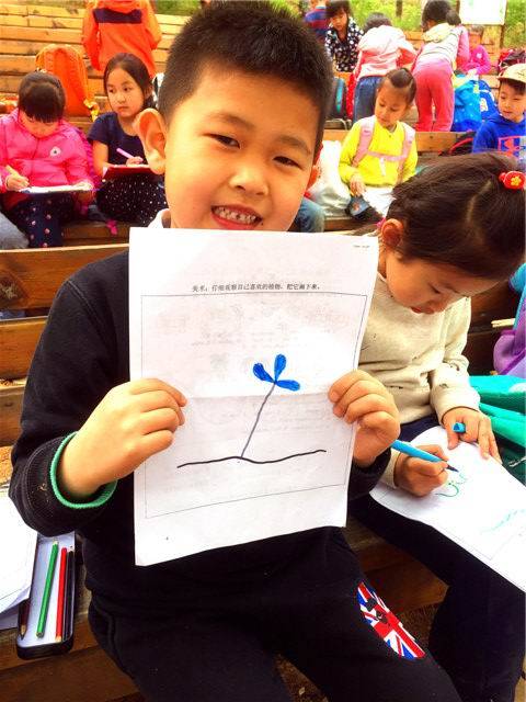 尽情玩耍后完美完成此次西山之行的实践学习表。我们书写了目的地名字,认识了“互生,对生,轮生,簇生”几种不同的叶子,记录了出发、到达、野餐以及返航的时间,圈点了英文问题的答案,画出了自己最喜欢的植物,带回了自己找到的叶子,总之是不亦乐乎,满载而归,孩子们都说不虚此行呢 !