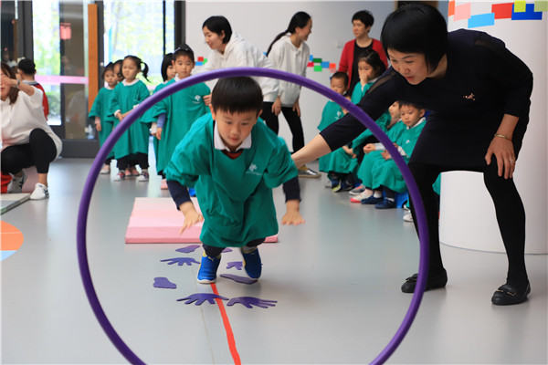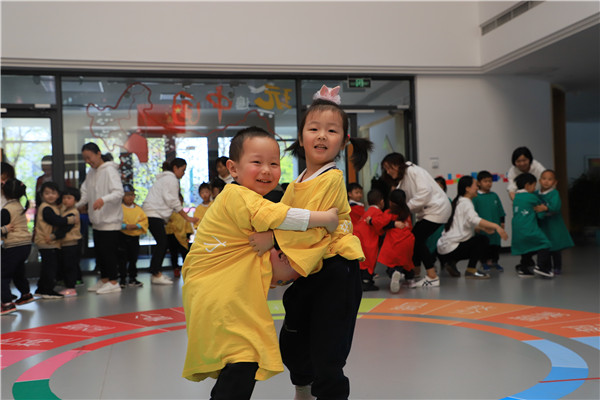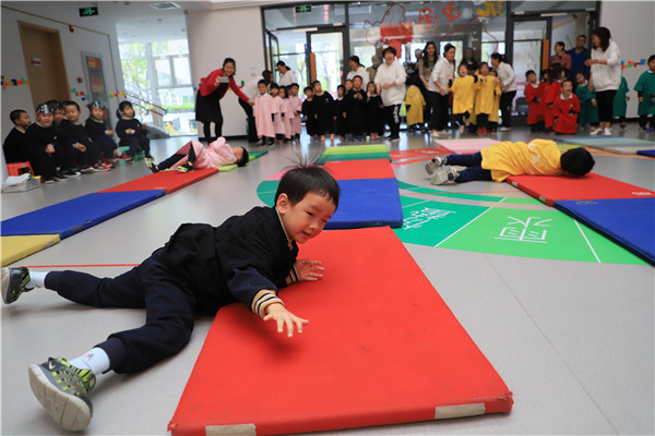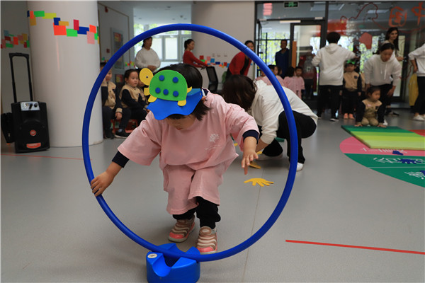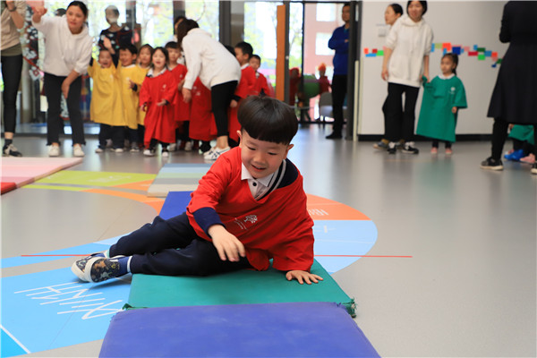 第一个游戏——卵宝宝,滚一滚。小卵宝宝在垫子上比比谁滚的最快。
