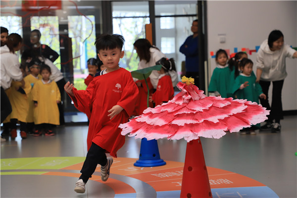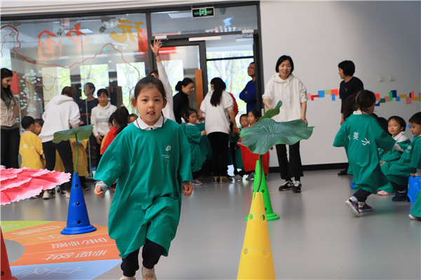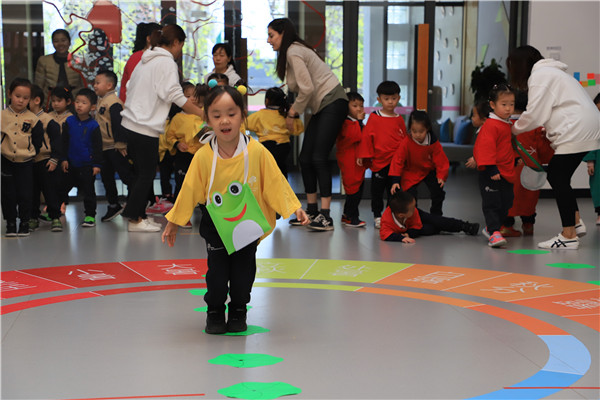 接下来是勇敢的小蝌蚪,小蝌蚪要快速地绕过小荷叶,然后快速地跑回来。