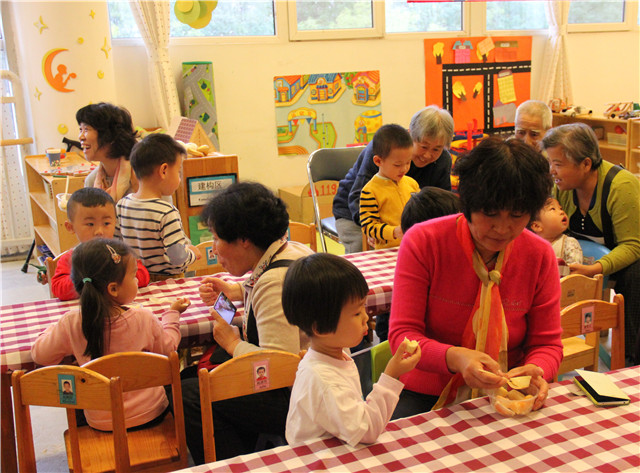 围绕重阳节小班年龄组开展了“我为爷爷奶奶送贺卡”,“我和爷爷奶奶一起包饺子” “我为爷爷捶捶背”“爷爷奶奶,我想对您说……”的活动中,让幼儿学会尊敬老人、长辈;知道关心他人。孩子们为爷爷奶奶表演了精彩的节目,并为爷爷奶奶们捶捶背,引得爷爷奶奶们一阵阵欢笑。尤其是两个新的小班,爷爷奶奶们看着一个月前来园还哭哭啼啼的宝贝们变得那么乖巧真是感慨万分。