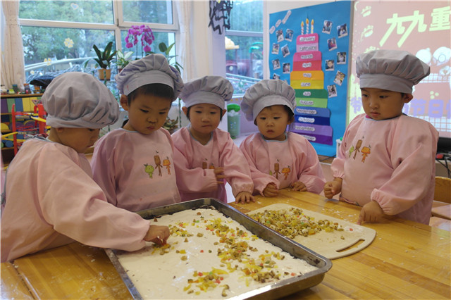 有的班级在老师的带领下,自己动手制作了重阳糕,晚上带回家给爷爷奶奶品尝,体现了对爷爷奶奶的关爱。