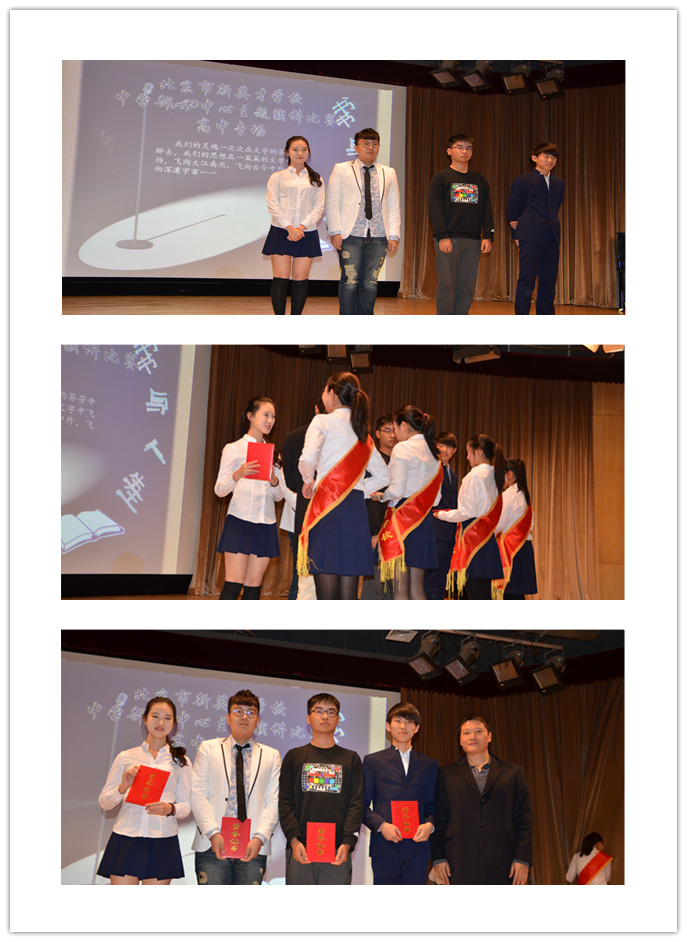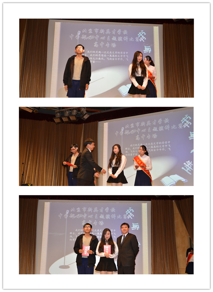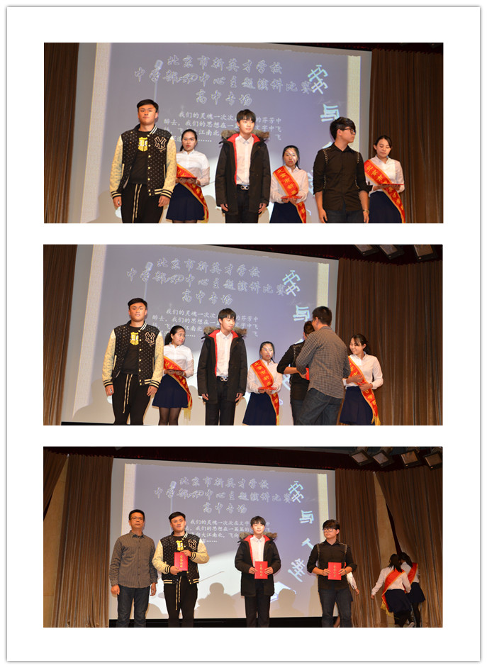 此次比赛分初赛和决赛两个阶段。初赛在各班举行,各班语文老师和科代表组织学生“人人写演讲稿,人人登台演讲”,最后选拔和推荐,确定一人参加学部决赛。