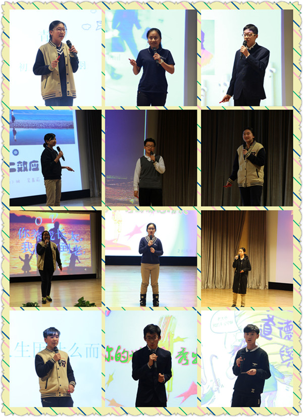10月底,学部就抓住期中测评的契机开展了全员参与的演讲比赛海选活动,人人都是演说家,个个秀出真我风采。经过全体学生公开评分推选,最终确定12名同学参加决赛。