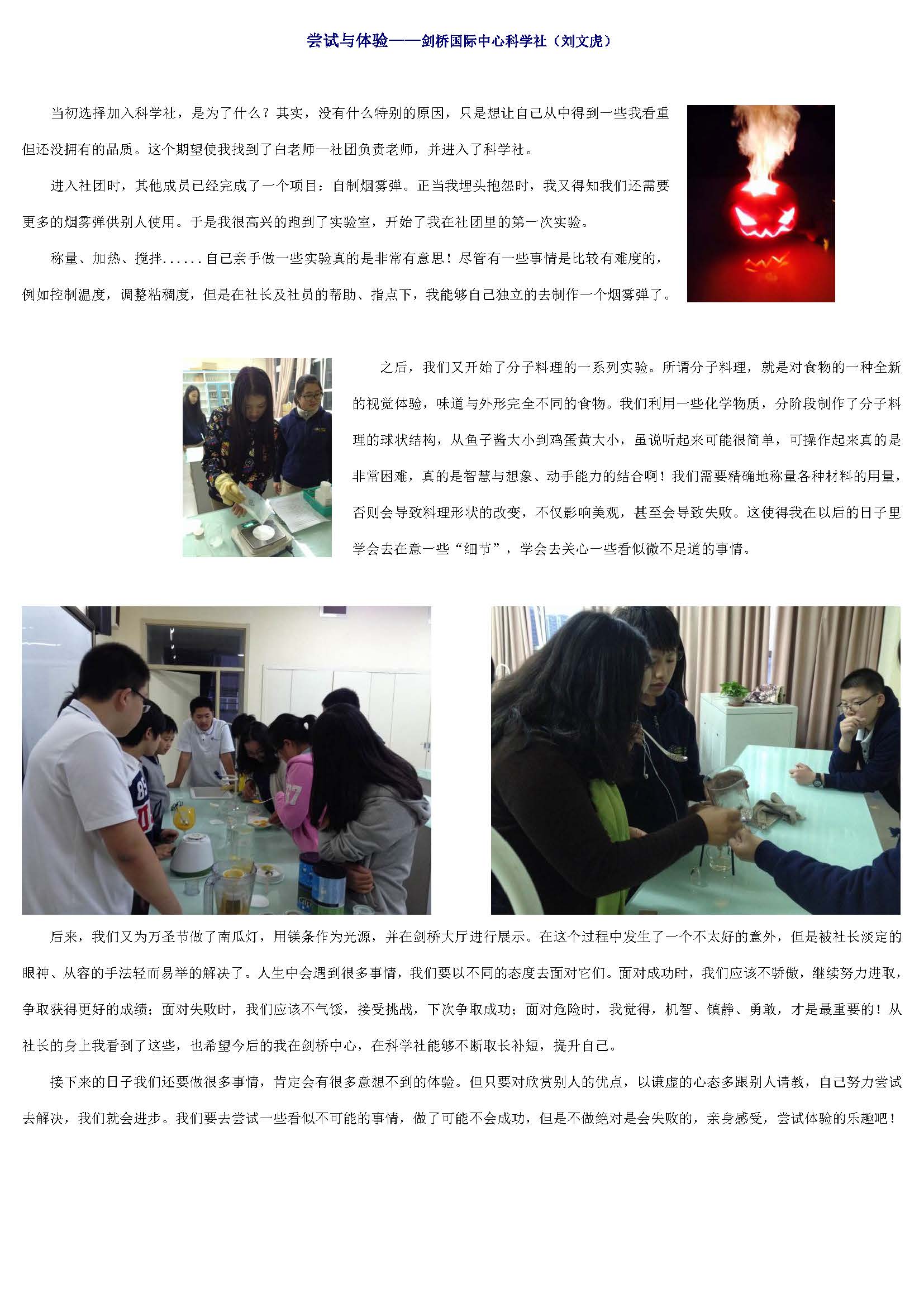 尝试与体验——剑桥国际中心科学社