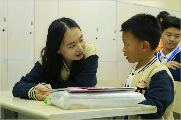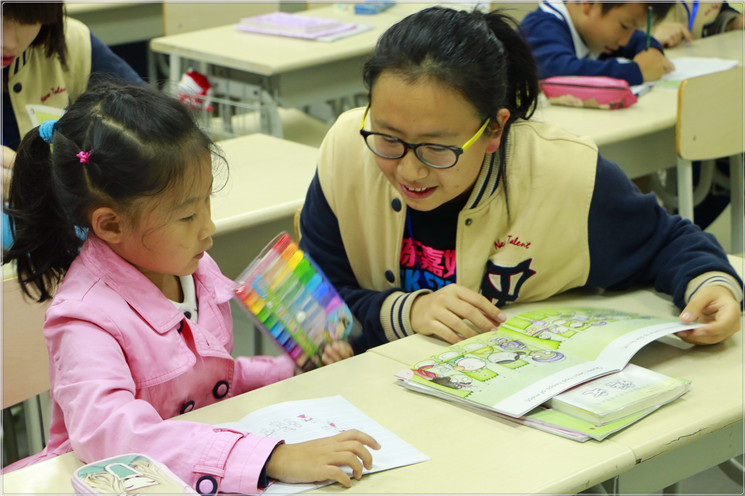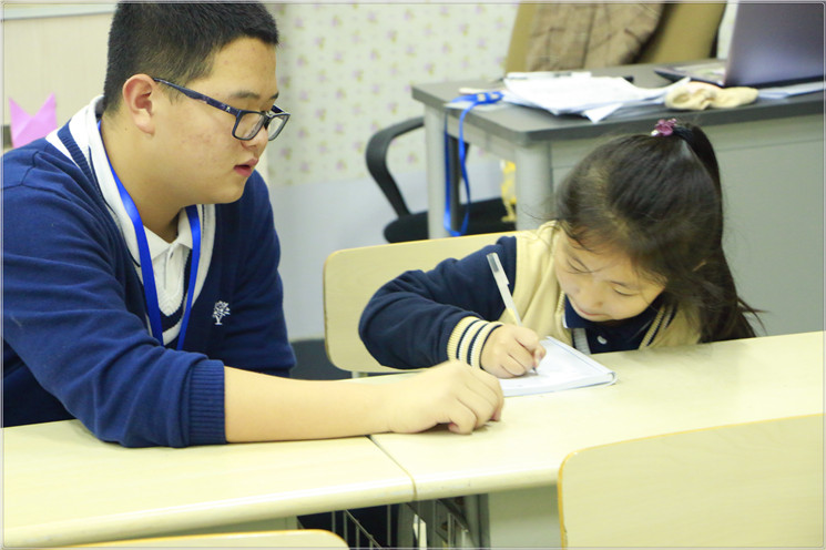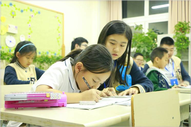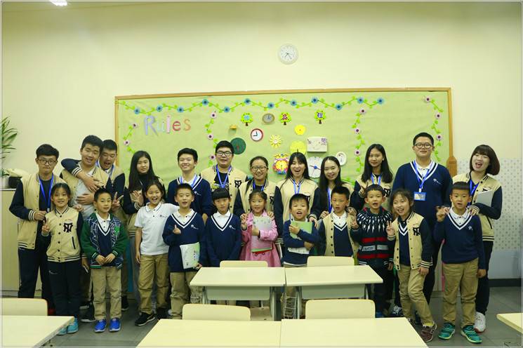 一进小学部教室,看到一群可爱的小朋友,不得不说真的有种返“老”还童的感觉。我们都非常兴奋,但是一想到我们即将作为“老师”帮助小朋友们学习我们又立刻严肃、认真起来。随后我们依次带领自己的辅导对象,大手牵小手,一前一后进入教室。