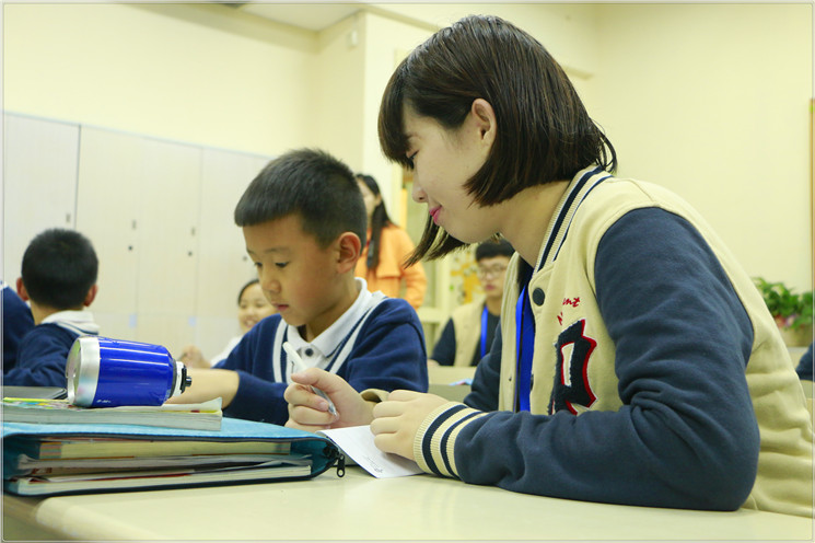 邓雅文:我辅导的孩子叫安安,看他一脸专注的样子,乖乖的,好喜欢哦。安安作业完成的很好,他不会的生词会去书上找。和他一起写作业很开心,希望以后多开展此类活动,拉近各学部之间的距离。
