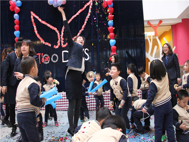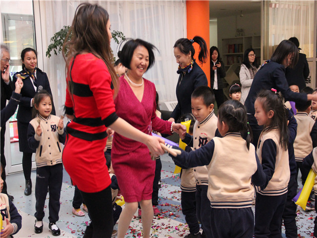 主题曲《A hundredth day》的词曲创作者剑桥中心的李放大博士作为特邀嘉宾来到了活动现场,与小朋友们同庆。同时来到活动现场的还有恒信彩学校各学部的校长、领导等。