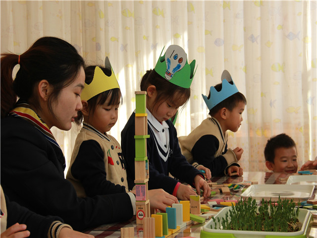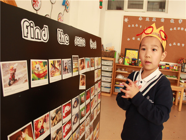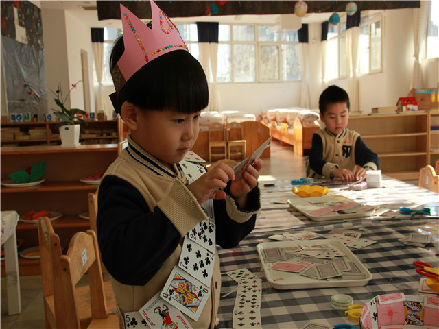 9:25,游戏环节拉开帷幕。趣味甜甜圈、find the same card、百天王冠制作、百变多米诺、百变扑克、在长卷上绘制自己的梦想等,让孩子们兴奋不已,三人一群,两人一组地结伴而行,去选择自己感兴趣的游戏,进行挑战。