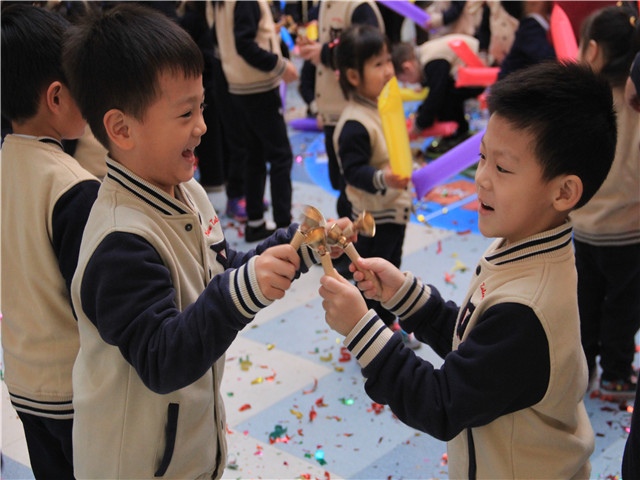 活动于9:10正式开始,首先,园长妈妈为小朋友们送上了美好的100天的祝福,之后随着主题音乐响起,全园上下师幼嘉宾一起大合唱,并用手中的乐器进行伴奏。主题曲结束,当孩子们还沉醉在音乐中时,礼花响起,五彩斑斓的花穗从上空飘落下来,撒落在地板上、孩子们的身上,现场一片沸腾,大人孩子们随着音乐激情舞蹈。
