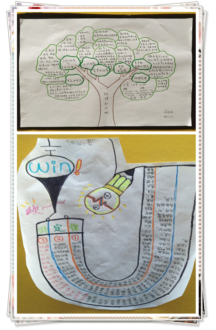 当孩子们胸有全局,重点清楚,就不至于一叶障目不见森林,在知识的末梢上过多地消耗精力和时间。因此“知识树”的绘制,有效地帮助他们抓住学科重点,提高学习效率。而绘制“知识树”是整理、消化所学知识的过程,他们复习着、思考着、想象着……每棵知识树都融入了他们巧妙的构思和的创意。