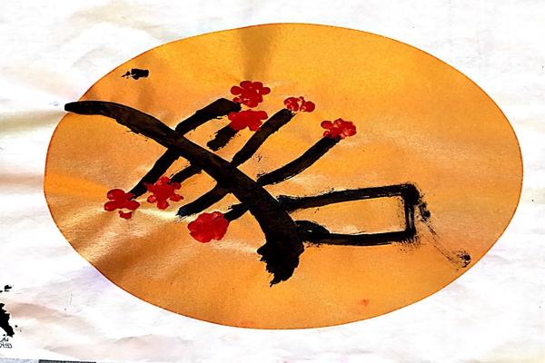 “腊梅花,腊梅花,寒冬腊月才开花,不怕冷,不怕霜,越是天冷越飘香。”听着这首好听的儿歌,孩子们欣赏着腊梅的视频美景。腊梅花在我们当地的生活中很少有见过的,孩子们更缺乏了解,在这次活动中能让孩子们初步认识腊梅花,并能学习运用国画、吹画、和手指印画的方法来表现腊梅花的特点,在创作的过程中感受用毛笔绘画的独特体会,同时提高幼儿对腊梅美的感受。