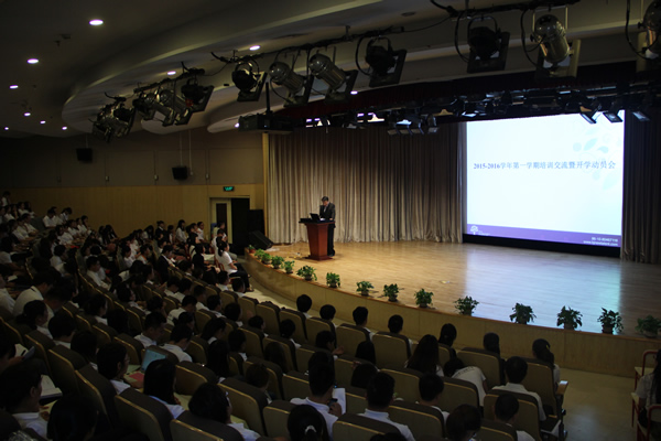 在学校一楼报告厅举行的培训交流会现场
