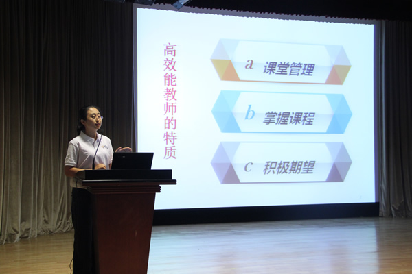 学校研究中心李莉博士针对九位教师的分享交流做了总结发言。培训是教师最好的福利,集合本学年“课堂建设年”的主题工作,相信不同角度、不同内容的培训将帮助我校教师实现高效课堂的建立。同时,李莉博士呼吁全校教师从学校十五年一贯制角度出发,将培训所获的感受心得付诸实践,在“课堂建设年”开始之际,大胆并努力行动起来。