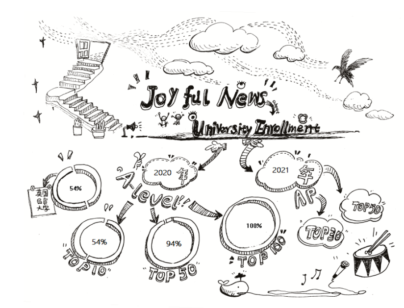 以2020年A Level成绩申请大学的数据为例,54%的毕业生申请到至少1所英国G5大学,54%的毕业生申请到世界排名前10大学,94%的毕业生申请到世界排名前50大学,100%的毕业生申请到世界前100大学。