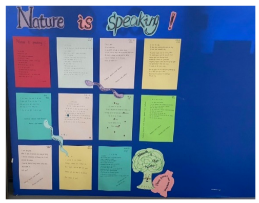我们在英文课上做了一次英文诗歌仿写/自由撰写,并选取了部分优秀的诗歌展示在走廊里。看到这些孩子的作品,我真的很高兴。