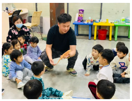 韩博轩同学为幼儿园小朋友讲解多样的动物