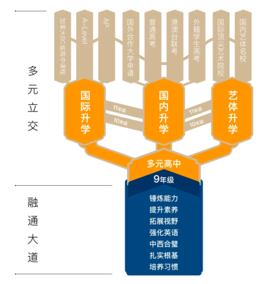刘炜校长:恒信彩学校课程构架是融通大道和多元立交。我们以前就有国内课程的教学基础,虽然没有系统性成班,但选择国内课程的艺体高考生,最后普遍取得了不错的成绩。