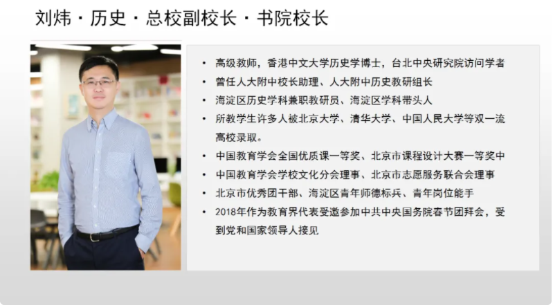 · 曾任人大附中校长助理、人大附中历史教研组长