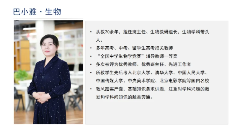 · 所带年级、班级凝聚力强、国内国际升学成绩卓著,学生考入中国传媒大学、北京第二外国语学院、中央美术学院、北京电影学院、华盛顿大学、波士顿大学、悉尼大学、多伦多大学等