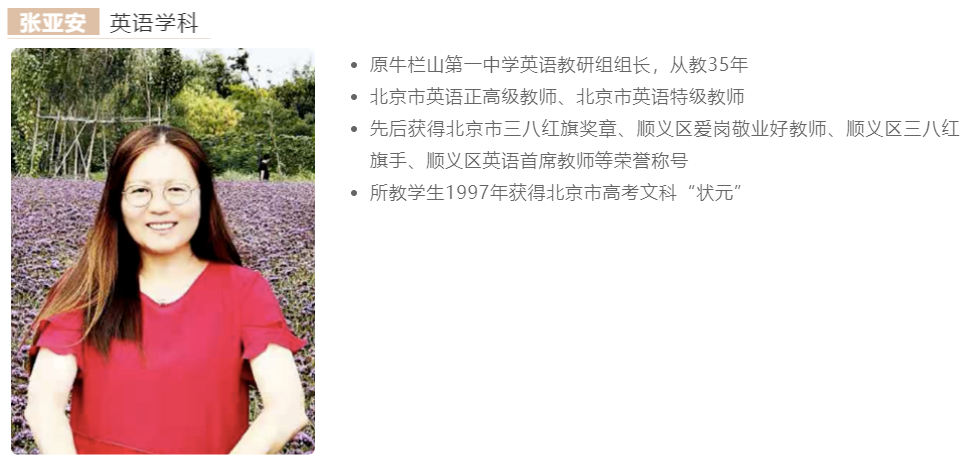 曾在北京市顺义牛栏山第一中学从教35年,担任英语教研组组长20余年,培养了大批优秀骨干教师,打造了一支团结、奋进的教学团队