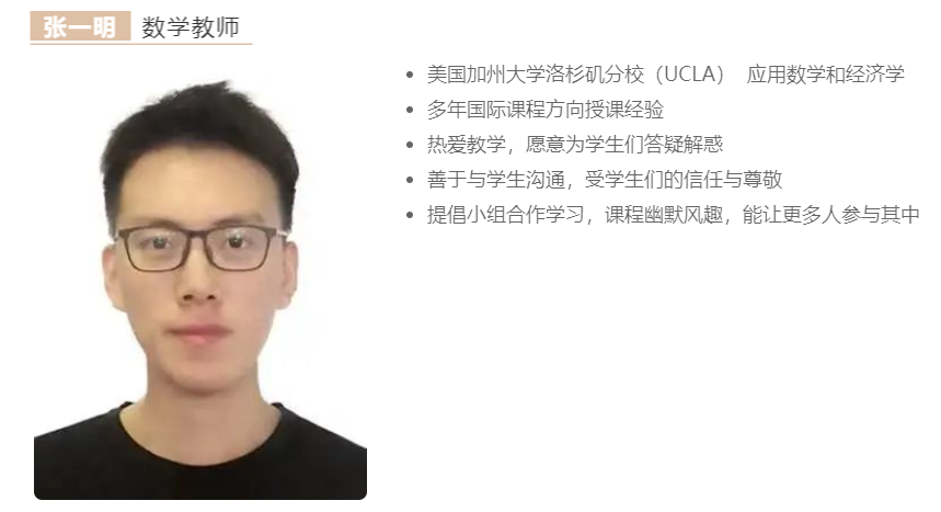 我是AP国际中心的经济学老师,本科毕业于美国加州大学洛杉矶分校(UCLA)的应用数学和经济学双专业。在高中和大学时期我经常给国内外的朋友们讲解难题,这让我小有名气,也对所讲知识有了更深的理解,更重要的是,这些经历让我对于教师职业产生了浓厚的兴趣。很多和我聊天的朋友讲数学有多么难学,我想如果学习数学的孩子们都能爱上这个学科,体会其中的乐趣,而不是进行背公式这样枯燥的流程会有多好。这样的愿望以及对教学的兴趣让我成了恒信彩的一名数学老师。我的授课方式很灵活,经常会有一些有趣的点子产生,让课堂更加有活力,相信如果上了我的课一段时间,学生们就会亲身感受到。