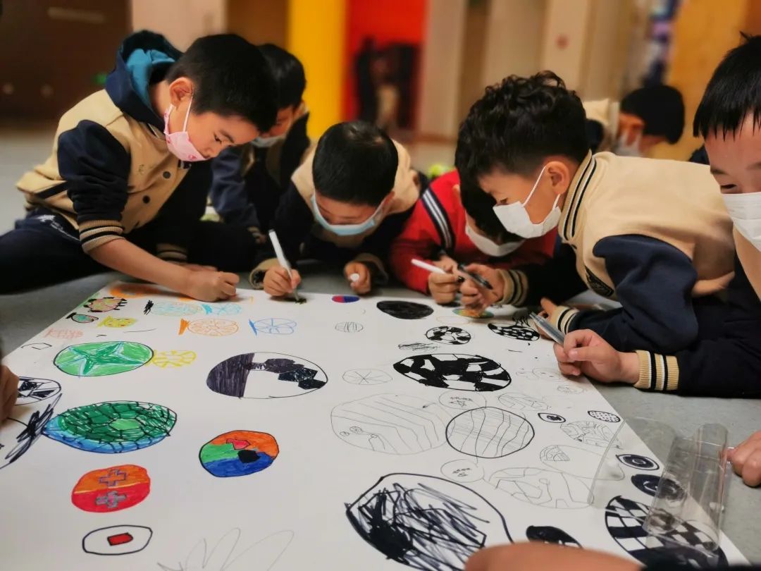 学生在比赛期间,为了让孩子们体会足球文化的多元性,我们联动美术老师,根据学生画作水平和对足球的理解程度,分别在一、二、三年级开展了画足球、画球衣、画球员的集体涂鸦活动。以绘画为载体,通过学科融合的方式,让孩子们体会到足球不仅仅是一项体育运动,其魅力更能激发丰富的创意与艺术创作。