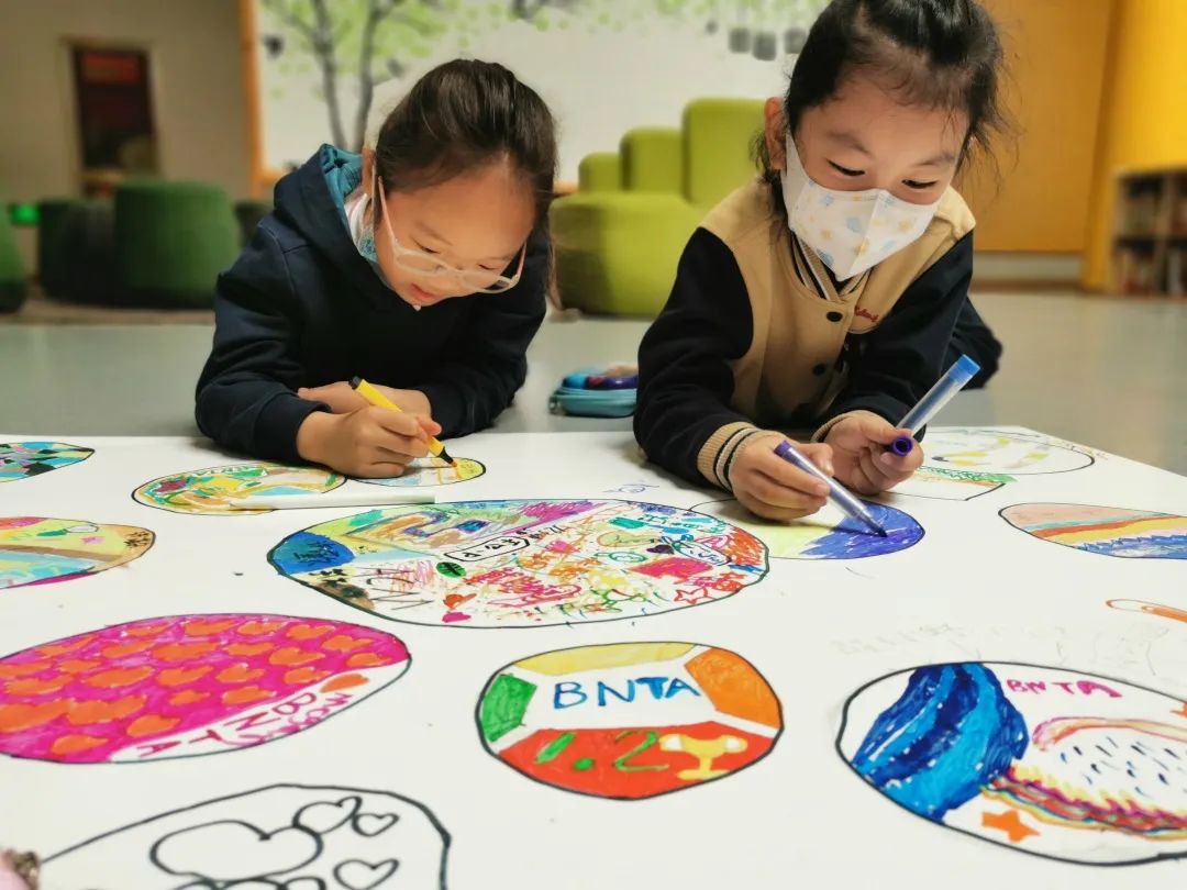 在活动期间,如果你漫步在恒信彩小学部的大厅和走廊,可以看到一个个投入的小身影,把自己对足球的理解和热爱转化为笔尖美丽的线条与色彩。
