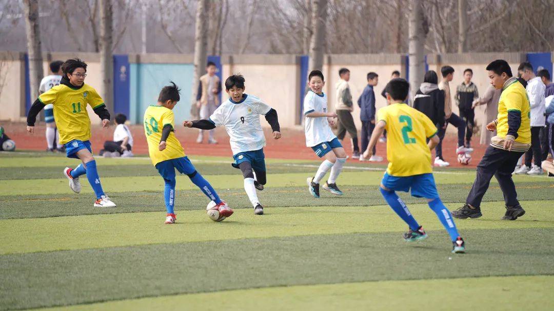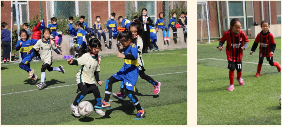 赛场上,是小运动员奋力传球、射门的身影;场边是加油助威的同班队友们。在这样的赛制下,各班级的凝聚力和合作力达到了空前的高度。
