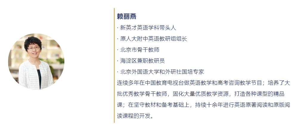 赖老师的课百听不厌,就说写作吧,赖老师把高分范例给我们分析,从段落结构到逻辑顺序、从摹写易考句到专项训练、从审题立意到语言灵性,让我们抓住英语学习的关键,我们真的很爱赖老师!