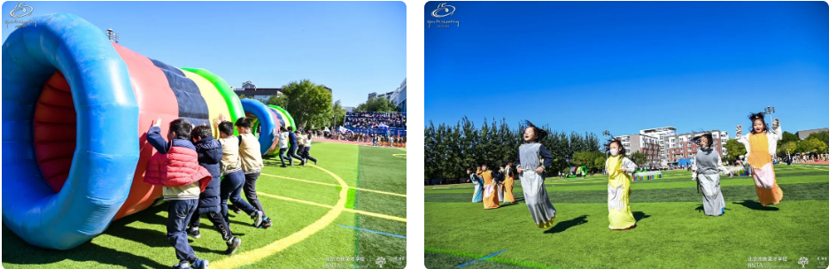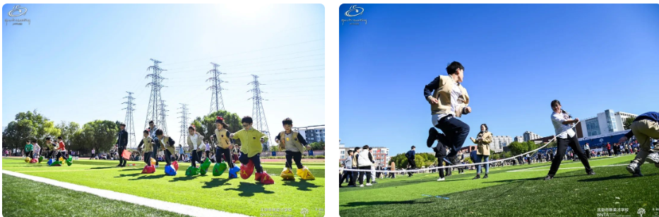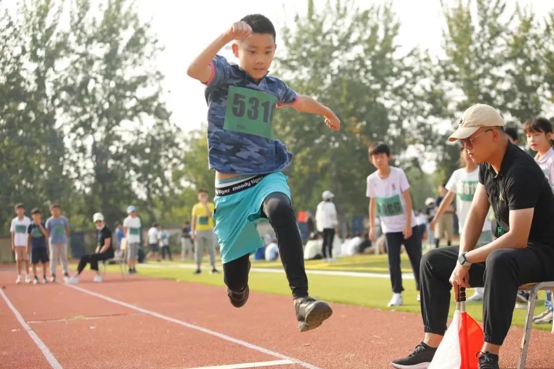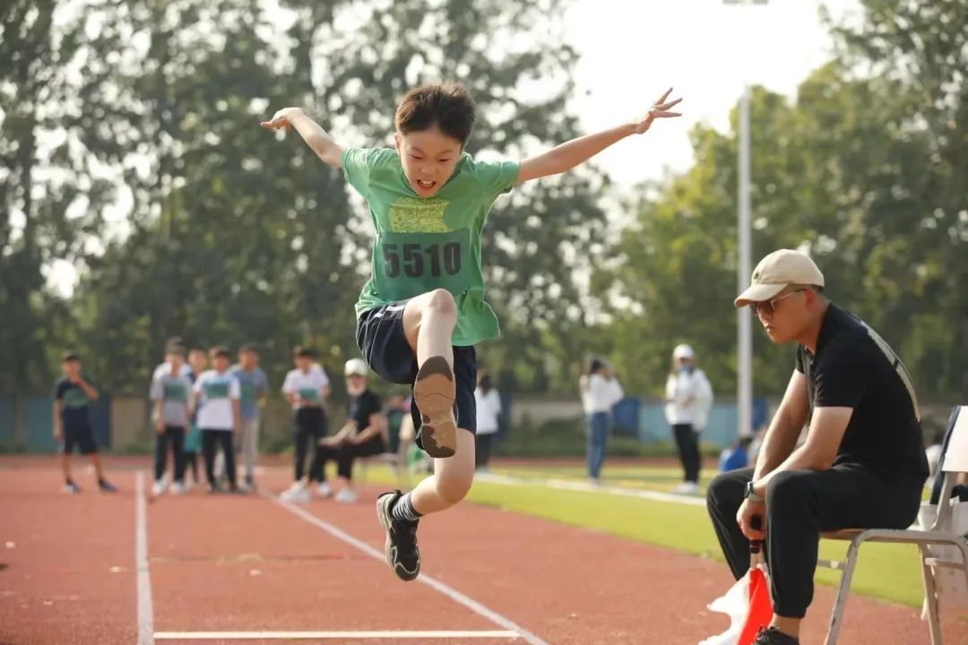 金色阳光里,运动会比赛日运动场上师生洒下拼搏的汗水。
