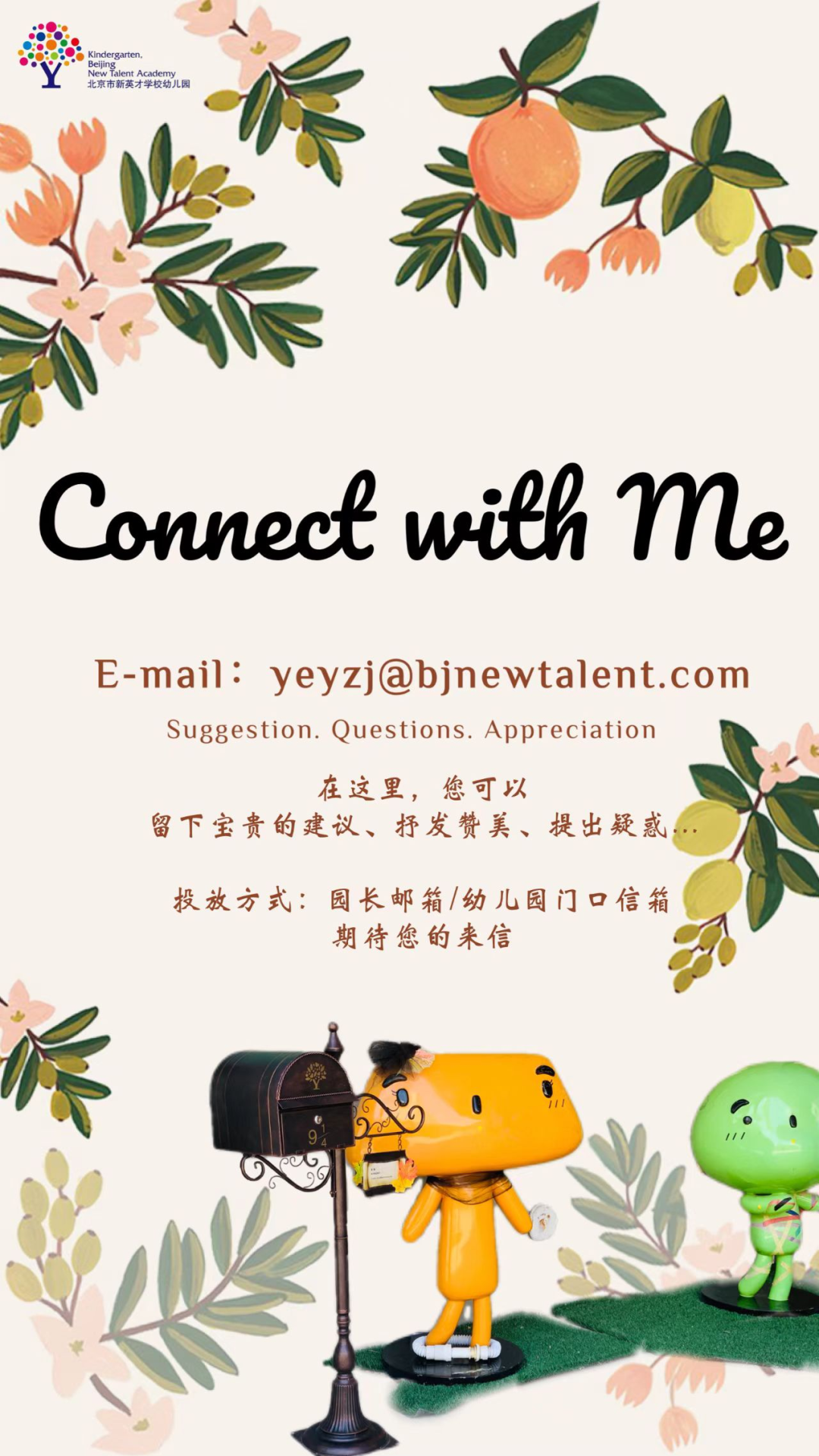 Email: principal@bjnewtalent.com(校长邮箱) luoyj@bjnewtalent.com(家长接待中心) hrc@bjnewtalent.com(人力资源部)