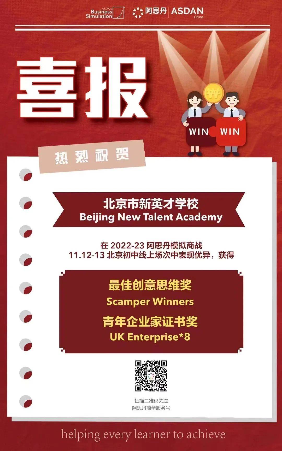 刚刚结束的阿思丹模拟商赛(ASDAN),恒信彩初二16名孩子组成的商业战队第一次出战,就将创意思维奖和青年企业家证书收入囊中。