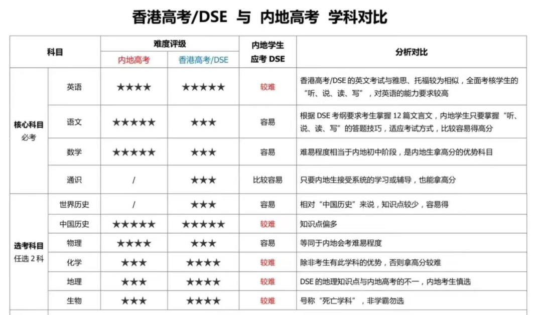 HKDSE和内地普高课程比较,每一科目有什么差异?