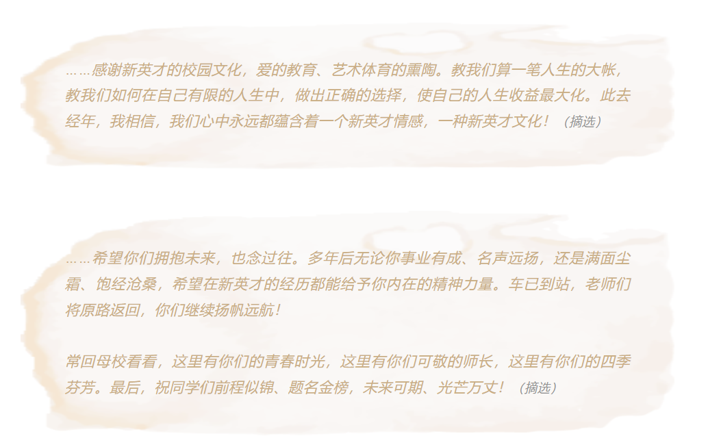 鲜衣怒马少年,不负韶华向远。分别在即,导师们为每一名同学一一送上临别赠语以及对未来的希冀与祝福。万语千言,谆谆嘱托,字字感恩,洋洋盈耳,铭记于心。