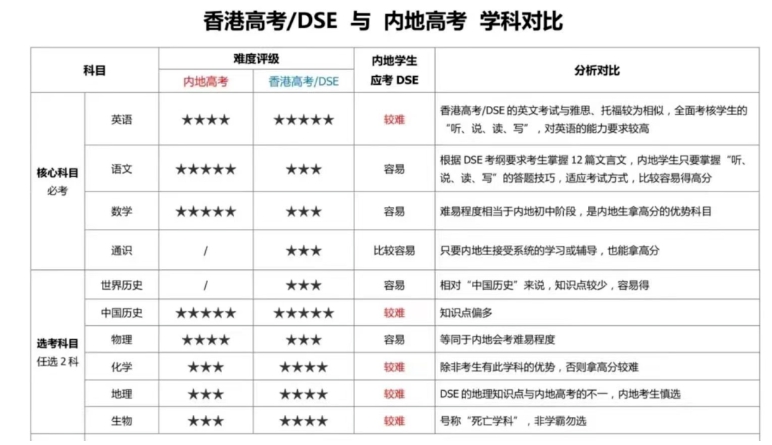 HKDSE和内地普高课程比较,每一科目有什么差异?