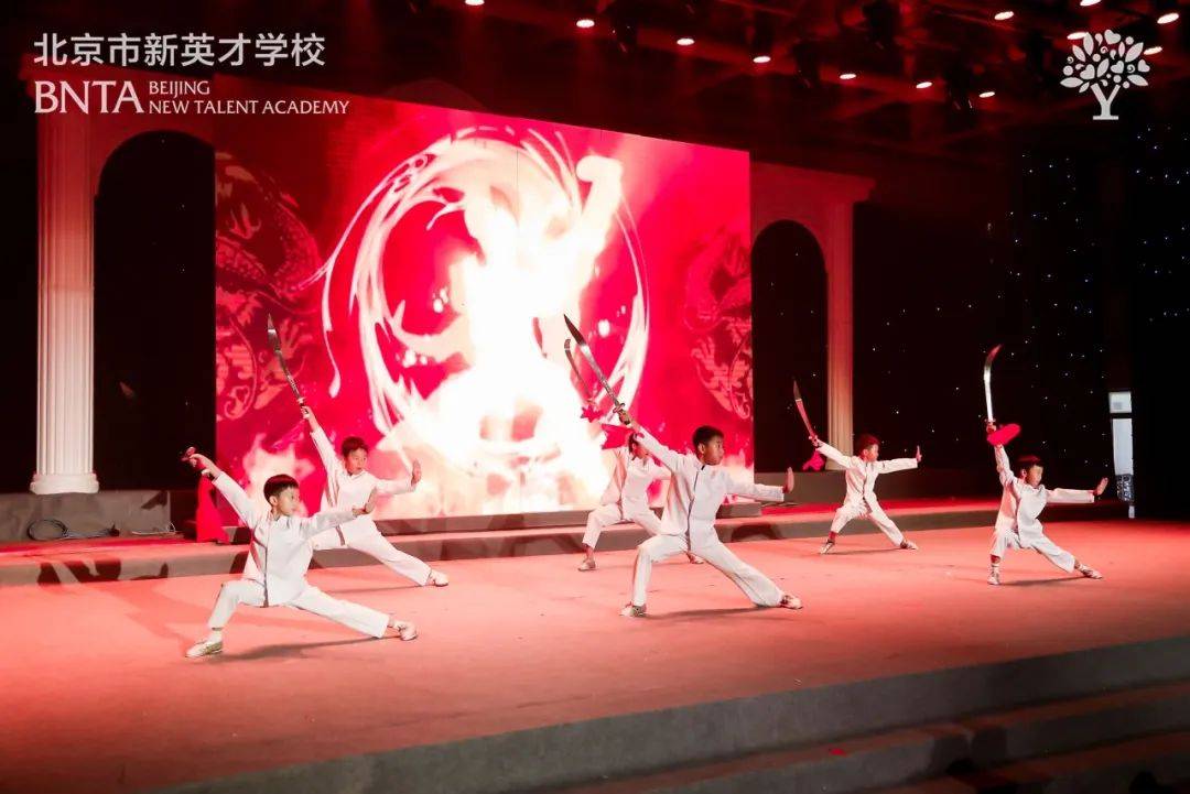 孩子们在舞台上展现着他们的武术舞蹈才华
