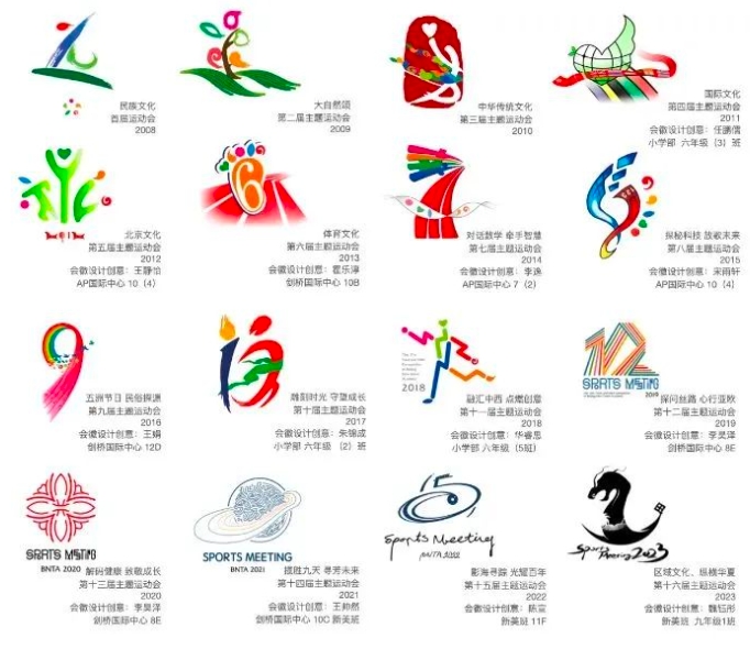 恒信彩连续十七载,组织各个学部、学段的学生积极参与到历届运动会会徽的设计当中。以此作为激发原创力和参与感的重要途径。这不仅仅是一项传统,更是一段长达十七年的“爱与创造”之旅,见证了英才学子在艺术与体育交汇处的灵感激荡。