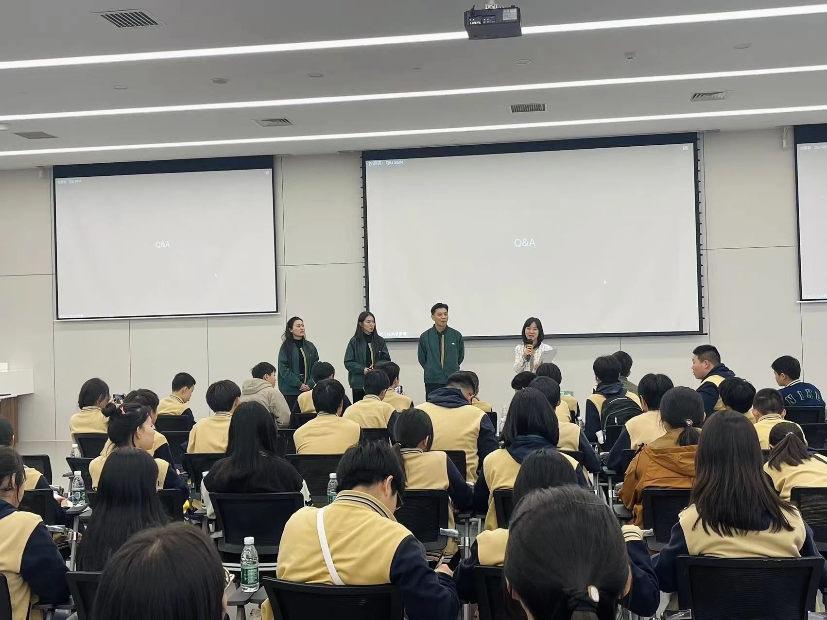 各小组同学以饱满的热情与严谨的态度精心筹备,依次登台进行汇报展示。他们分享了在职业探究活动中的所见所闻、所思所感。每组汇报结束后,本组的主理人上台进行点评。
