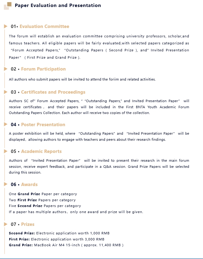 Email subject format:“BNTA Forum+Paper Category ( Mathematics/Natural Sciences/Engineering ) + School + Name+Paper Title”BNTA