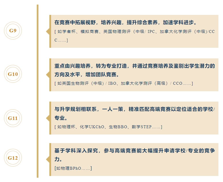 剑桥国际中心以四年竞赛思路,帮助学生循序渐进,由浅入深地培养竞赛策略,提高学生竞争力。