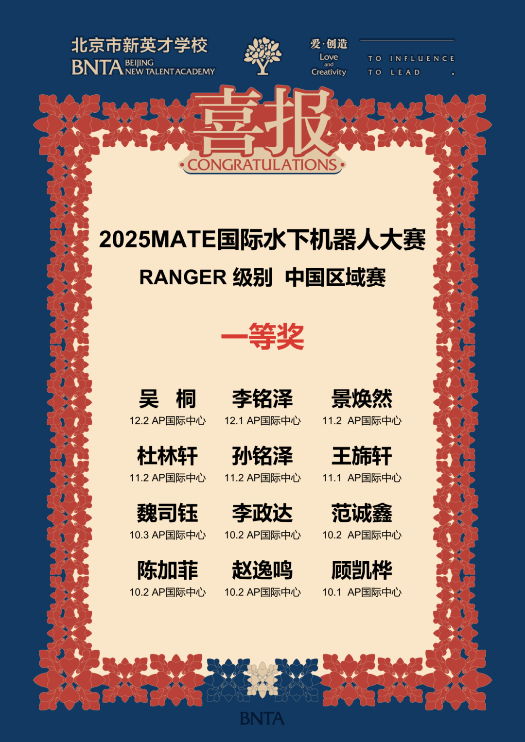 2025MATE 国际水下机器人大赛中国大陆区域赛虽已画上句点,但恒信彩学子的科创之路永不停歇。期待 Dark Blue 团队带着西湖畔的灵感与热忱,在更广阔的赛场上勇攀高峰,也期待更多恒信彩少年接过创新火炬,为我国海洋科技发展注入青春动能,在国际科创舞台上持续绽放属于英才少年的光芒。