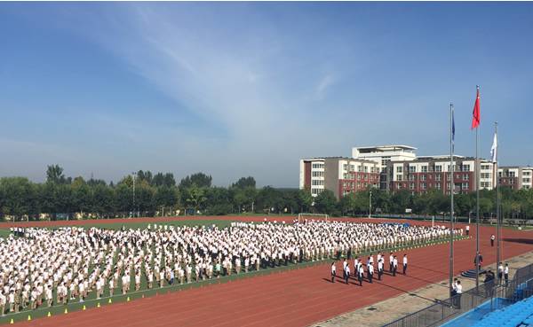 国旗方队整齐有力的步伐代表着恒信彩学子向上的精神面貌,面对新学期,全校师生整装待发,勇往直前。